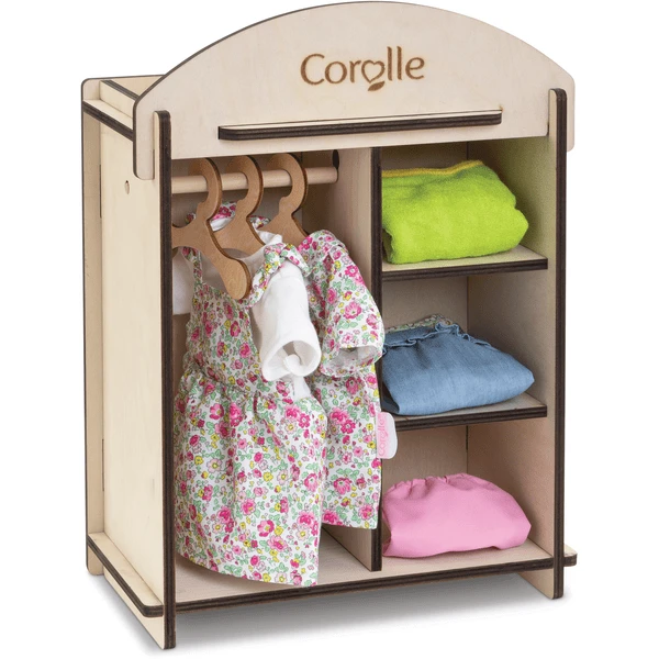 Orde moet geleerd worden. De kleine pop heeft een heleboel mooie kleren, maar ze hebben ook hun eigen plaats nodig. Deze garderobe is daar perfect voor.