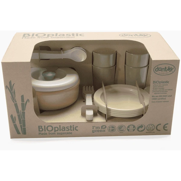 De eetset van dantoy is gemaakt van bioplastic en wordt in Denemarken geproduceerd uit suikerriet. Hierdoor is het product 100% herbruikbaar en gemaakt van 100% hernieuwbare grondstoffen.