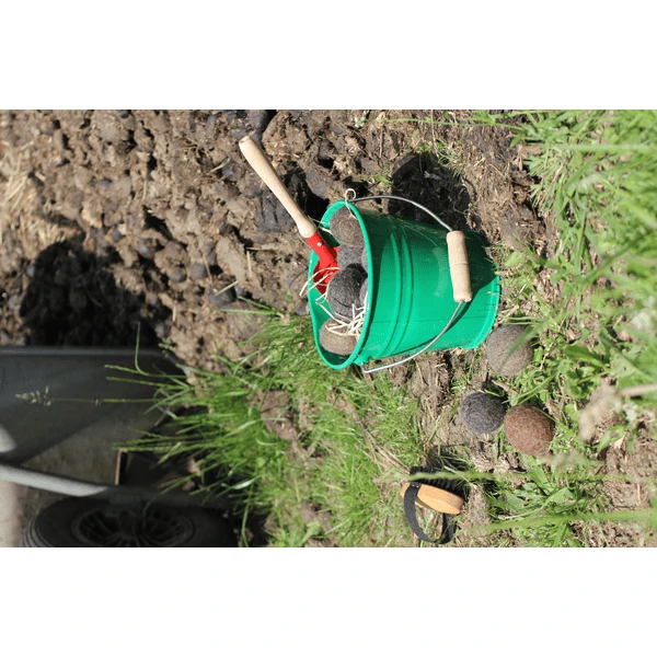 De set bestaat uit een gekleurde metalen emmer, een rode metalen schep, een pakkje scheerwol voor zes paarden keutels. Met onze keutelset leren kinderen met veel plezier en de verantwoordelijkheid te nemen voor hun viervoeter.