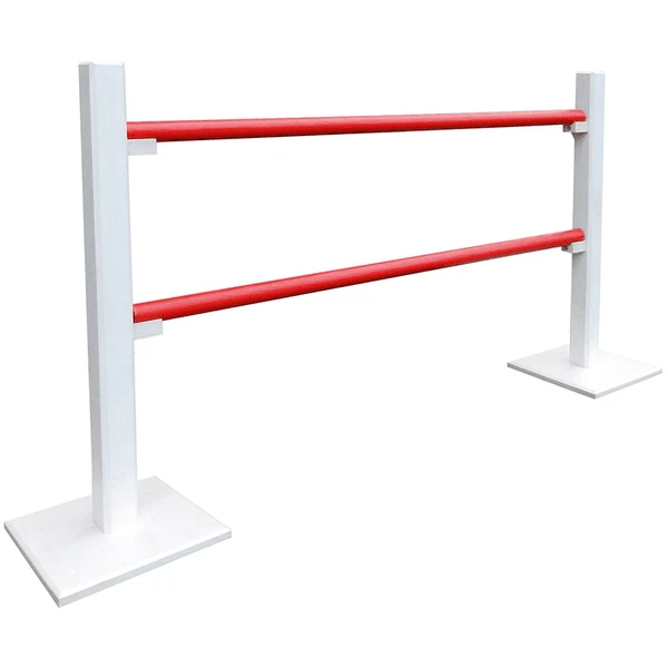 In kleur passend bij onze kleine hindernis Cavaletti is er ook een hindernis voor nog meer moedige springpaarden. De rode staven worden alleen maar aangezet zodat ze in geval van een schok naar beneden kunnen vallen niemand pijn doen. Natuurlijk kun je ook de bovenste balk weglaten voor het trainen van de hindernissprong.