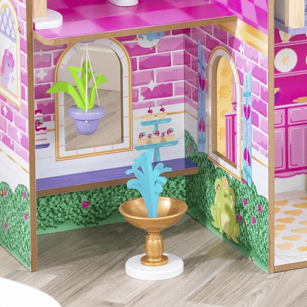 Het is een lust voor het oog met mooi meubilair, een feestelijke inrichting en een luxueus dakterras. Het 1,20 m hoge poppenkasteel strekt zich uit over vier verdiepingen en doet kinderharten sneller kloppen. Het paleis komt tot leven met koninklijke accessoires, verlichting en geluiden.