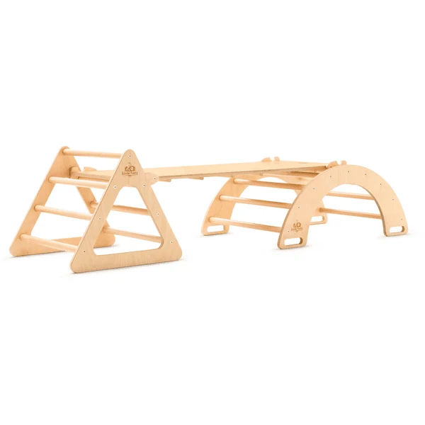 Deze klimdriehoek is zeer compact en heeft klimharingen aan 2 zijden. Gemaakt van verantwoord gewonnen berkenmultiplex en beukenhout, is het een prachtige duurzame optie voor beweeglijke kinderen die hun avontuurlijke kant willen verkennen. Door te spelen met het Pikler-systeem krijgen kinderen meer spier- en cardiovasculaire kracht, bouwen ze aan hun gevoel van eigenwaarde en verbeteren ze hun grove motoriek terwijl ze hun verbeelding verkennen.