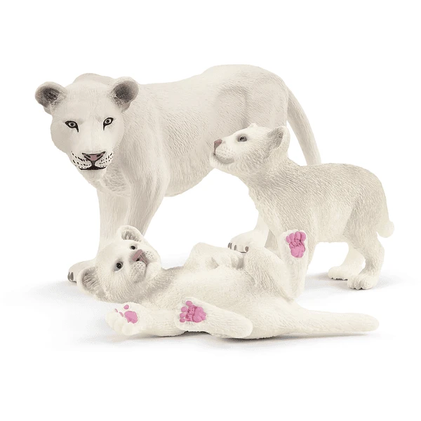Witte leeuwen kunnen geen kleurstoffen produceren in hun huid en haar. Toch zijn ze, net als de moederleeuw met baby’s van Schleich ® Wild Life, geen albino’s. Ze missen de karakteristieke rode ogen. In het wild hebben de grote katten dezelfde habitat als andere Afrikaanse leeuwen. Zij leven op de savanne, in droge bossen en halfwoestijnen. Daar jagen ze op antilopen, gazellen, gnoes, buffels en zebra’s.